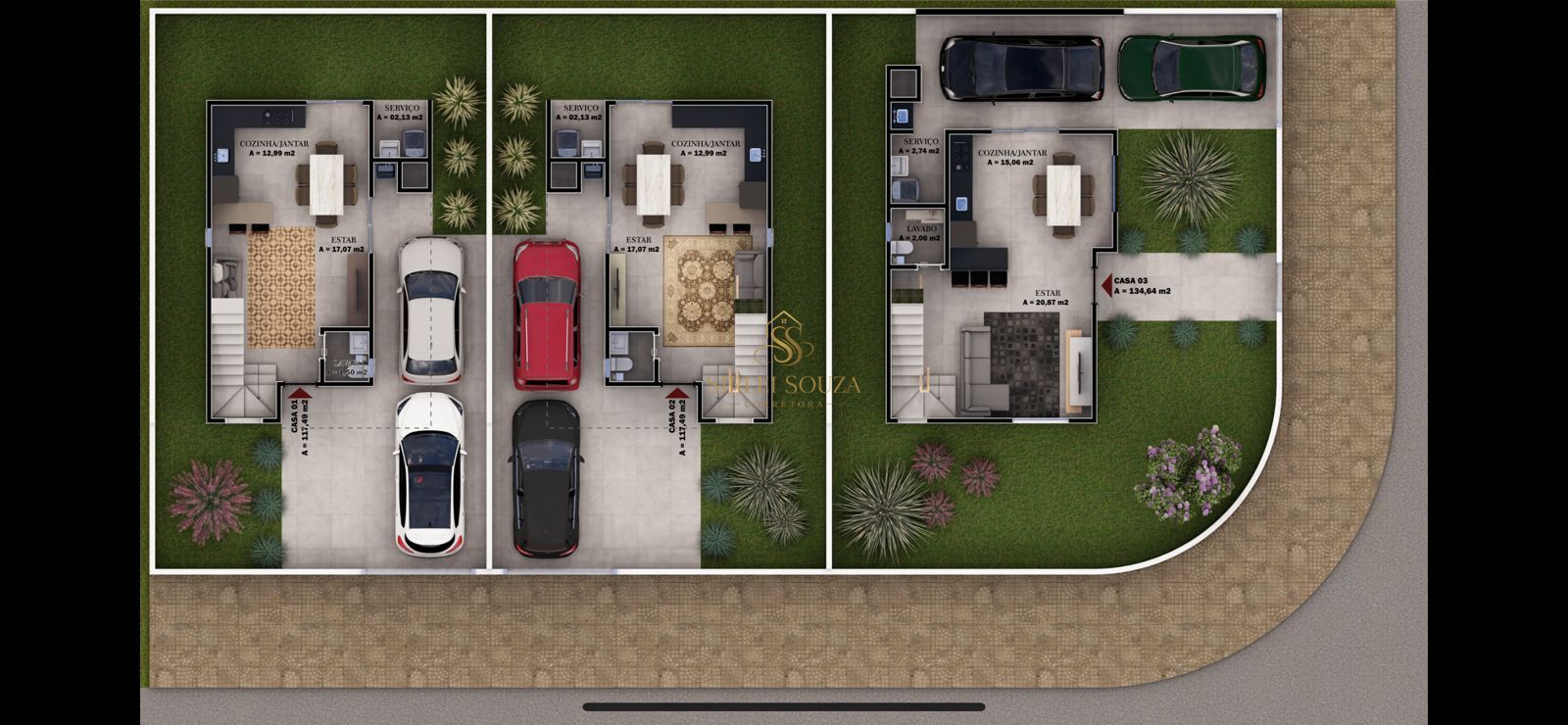 - Área construída: aproximadamente 117,49m2;